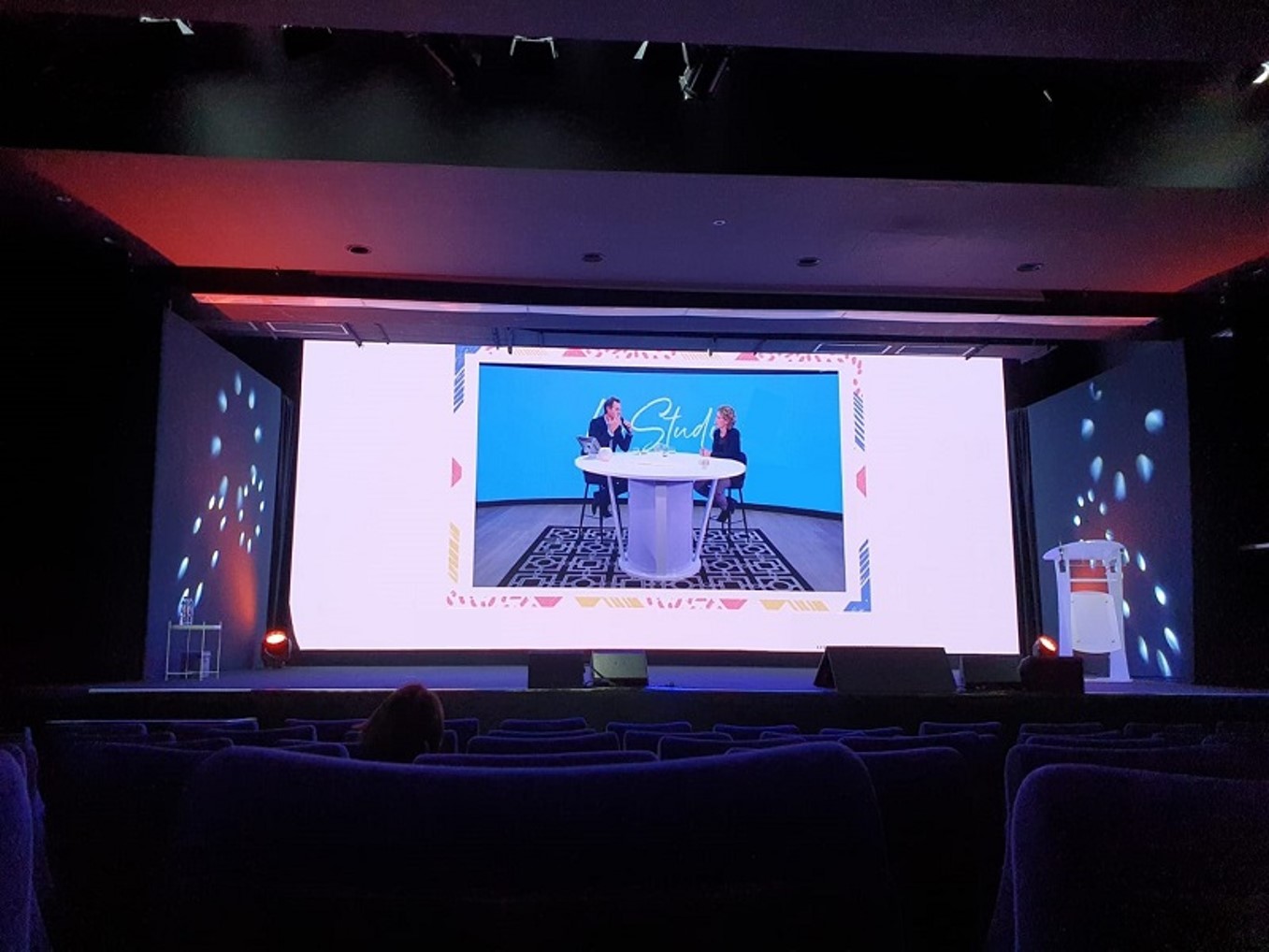 - Un espace scénique entièrement équipé et connecté pour diffuser vos messages (en streaming live ou enregistré)